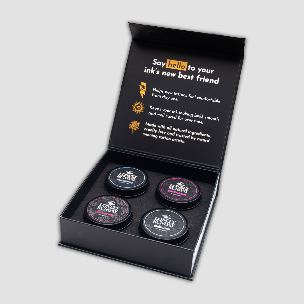 Tattoo Butter is more than just a tattoo care essential, it’s an experience. With delicious scents and beautiful colours, caring for your ink becomes something you actually look forward to.